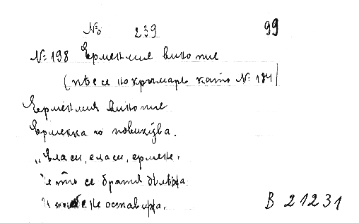/ан.оп.РН гр.ПКЛ/Ф:На кръчмарТмп:УмереноСгн:Масив "В" единен номер 21231Звр:Локрийски дихорд |