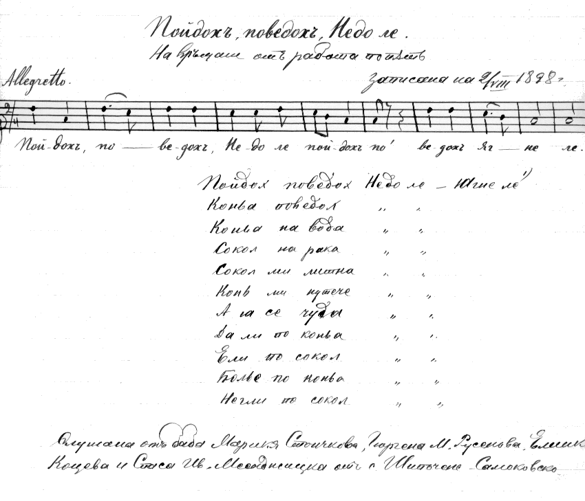 Пойдох поведох ,Недо леПойдох поведох (Недо ле+)пойдох понедох (ягне ле+)конье поведох (Недо ле+)конье на вода (ягне ле+)